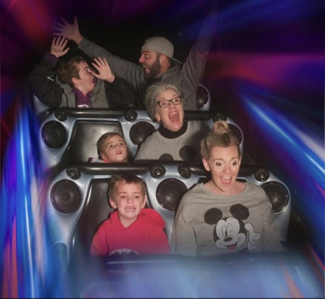 I love this picture from when our family went to Disneyland a few years ago. We had so much fun. You wouldn’t know it from the look on my grandson’s face on the front row!